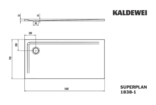 Kaldewei SUPERPLAN 1838-1, Douchebakken, 75x160cm
