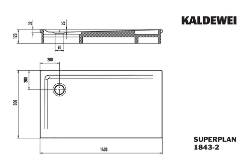 Kaldewei SUPERPLAN 1843-2, Douchebakken met houder, 80x140cm