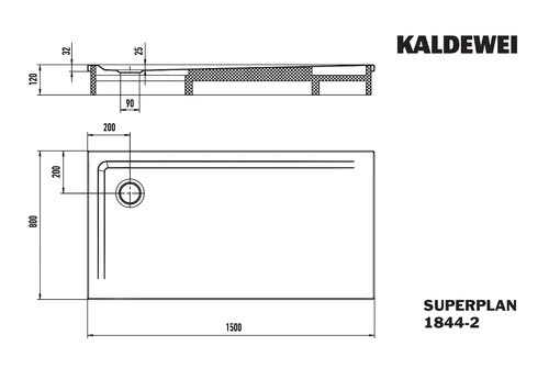 Kaldewei SUPERPLAN 1844-2, Douchebakken met houder, 80x150cm