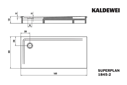 Kaldewei SUPERPLAN 1845-2, Douchebakken met houder, 80x160cm