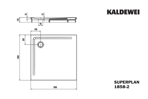 Kaldewei SUPERPLAN 1858-2, Douchebakken met houder, 100x100cm