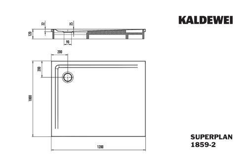 Kaldewei SUPERPLAN 1859-2, Douchebakken met houder, 100x120cm