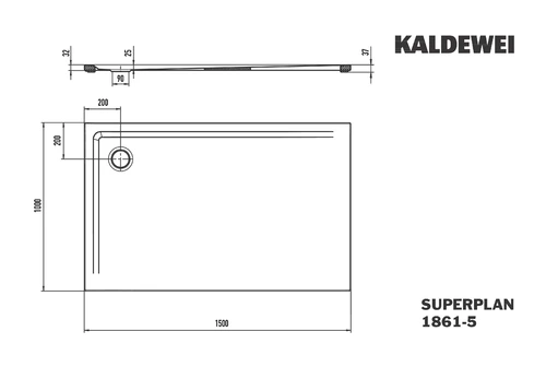 Kaldewei SUPERPLAN 1861-5, Douchebakken met extra platte houder, 100x150cm