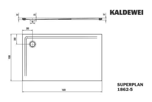 Kaldewei SUPERPLAN 1862-5, Douchebakken met extra platte houder, 100x160cm