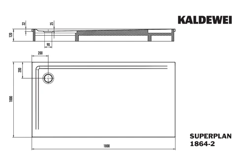 Kaldewei SUPERPLAN 1864-2, Douchebakken met houder, 100x180cm