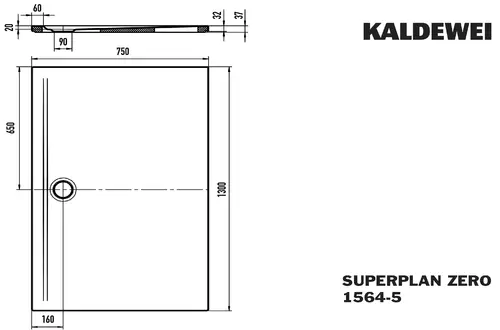 Kaldewei SUPERPLAN ZERO 1564-5, Douchebakken met extra platte houder, 130x75cm