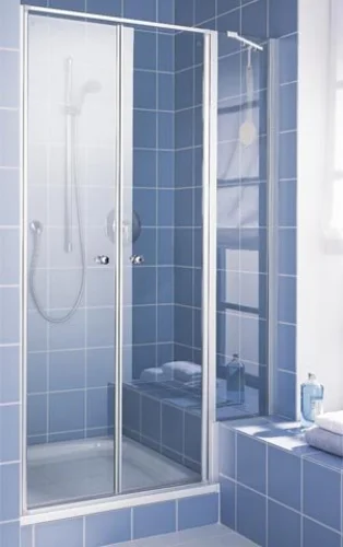 - Gedeeltelijk omkaderde deur met twee glazen panelen,