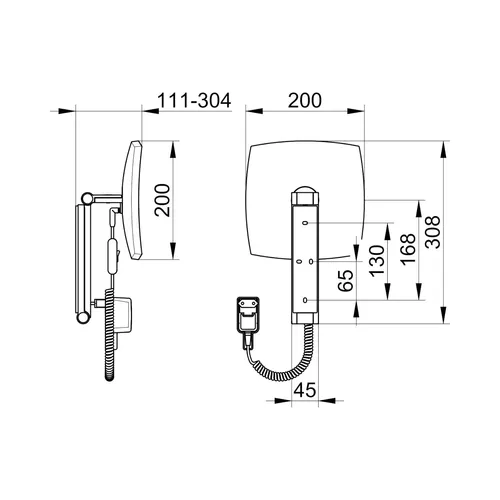KEUCO iLook_move Make-upspiegel, verlicht, hoekig, verchroomd, met spiraalkabel en snoerschakelaar