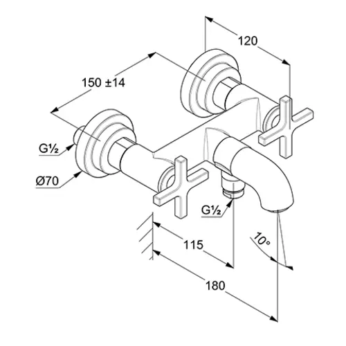 KLUDI NOVA FONTE CLASSIC bad- en douchemengkraan, wandmontage, kruisgrepen, chroom