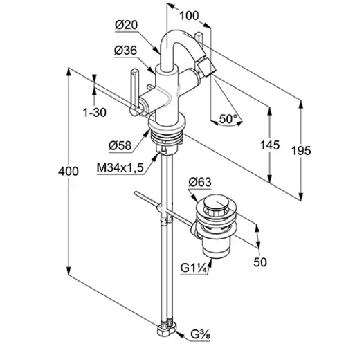 - Uitloophoogte onderkant 145 mm