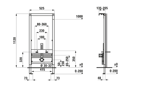 LAUFEN CB1 installatiesysteem voor wandbidets, draagvermogen 400kg, in hoogte verstelbare poten, H89266000001