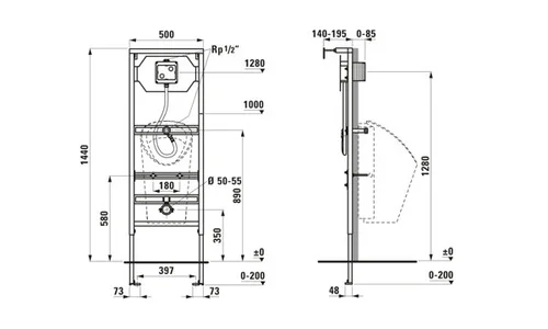 LAUFEN CU2 installatiesysteem voor urinoirs, zonder geïntegreerde bediening, in hoogte verstelbare voet