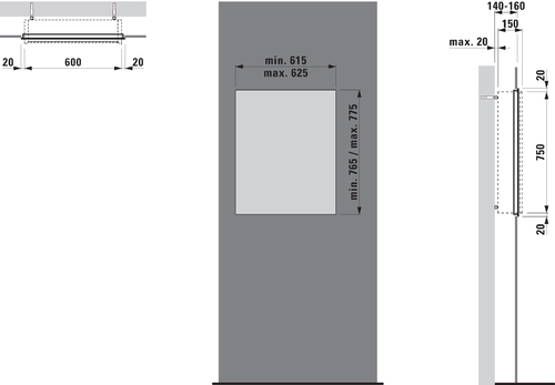 - voor spiegelkast 600 mm