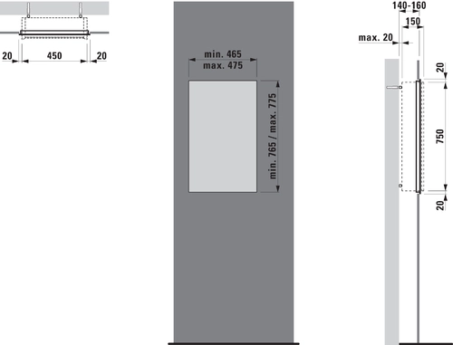 LAUFEN Frame 25 montagekader set, voor spiegelkast H408301/2, voor 450mm