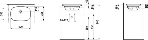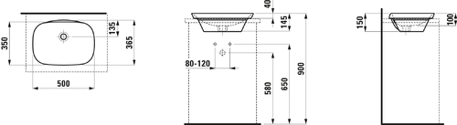 LAUFEN INO inbouwwastafel, zonder kraangat, zonder overloop, 500x365mm