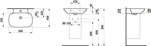 LAUFEN INO wastafel, zonder kraangat, zonder overloop, 560x450mm