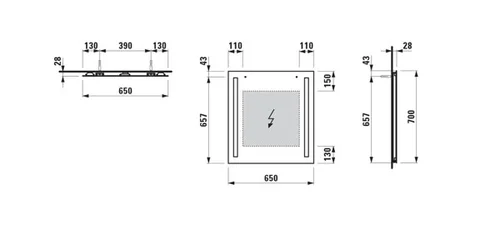 LAUFEN LANI spiegel, twee verticaal geïntegreerde lampen, 650x28x700mm
