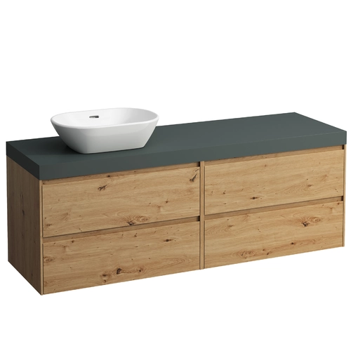 LAUFEN LANI wastafelblad traffic grey incl. badmeubel, 1 uitsparing links, 1570x495x580mm