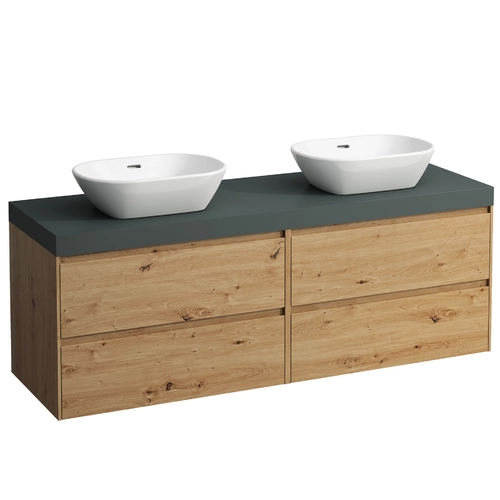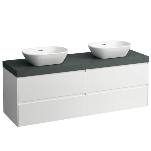 LAUFEN LANI wastafelblad traffic grey incl. badmeubel, 1 uitsparing links en rechts, 1570x495x580mm