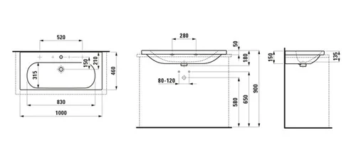 - breedte: 1000mm, diepte: 460mm, hoogte: 180mm