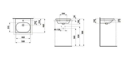 LAUFEN LUA opzetwastafel, 1 kraangat, met overloop, 500x460mm