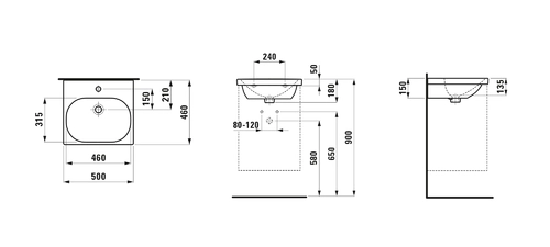 LAUFEN LUA wastafel, 1 kraangat, zonder overloop, 500x460mm