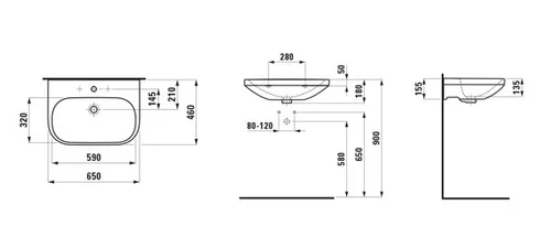 LAUFEN LUA wastafel, zonder kraangat, met overloop, 650x460mm