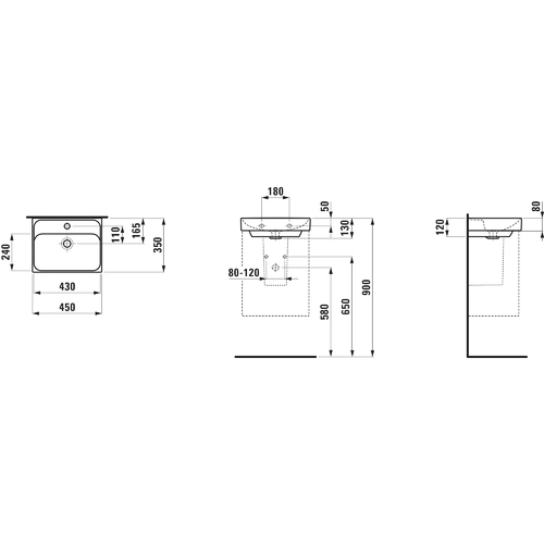 LAUFEN Meda handdouche wastafel, onderbouw, 450x350mm, zonder kraangat, zonder overloop