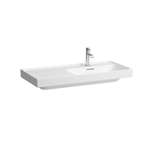 LAUFEN MEDA wastafel, onderbouw, planchet links, 1000x460mm, 3 kraangaten, met overloop