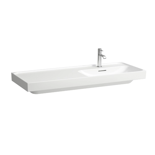 LAUFEN MEDA wastafel, onderbouw, planchet links, 1200x460mm, 3 kraangaten, met overloop