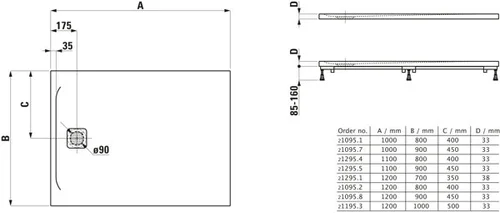 LAUFEN Pro douchebak, 1100x800x33mm, superplat, 0