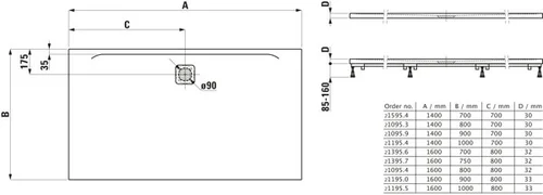 - diameter van de afvoer: 90 mm