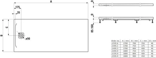LAUFEN Pro douchebak, 1800x750x46mm, superplat, 0