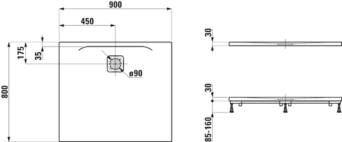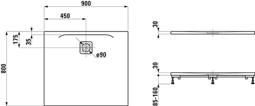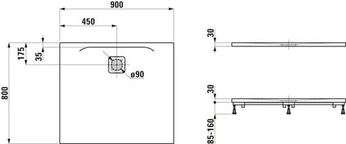 LAUFEN Pro douchebak, 900x800x30mm, superplat, 0