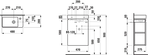 • Breedte: 480 mm, Diepte: 280 mm, Hoogte: 690 mm
