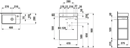 LAUFEN Pro S complete set, wastafel, 1 kraangat rechts, incl. badmeubel, deur rechts, planchet links, 690x480mm