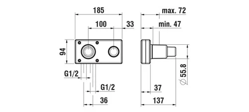 LAUFEN Simibox 2-Point inbouwdeel, voor wandmengkraan, 1/2\", bedieningshendel links