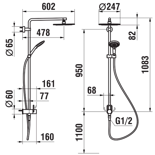 LAUFEN Twin douchesysteem, voor Simibox 1-Punt, regendouche D 247mm, zwenkbare douchearm