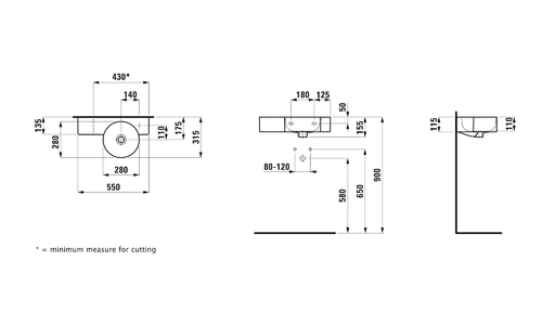 LAUFEN Val handspoelbak, zonder kraangat, planchet links, met overloop, inkortbaar, 550x315mm