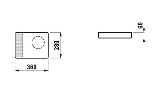 - Lengte: 360 mm, breedte: 280 mm, hoogte: 60 mm