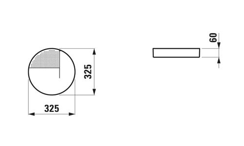 • Lengte: 325 mm, breedte: 325 mm, hoogte: 60 mm