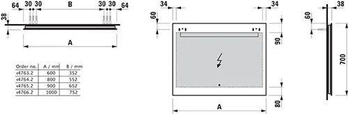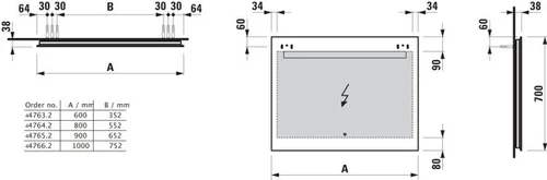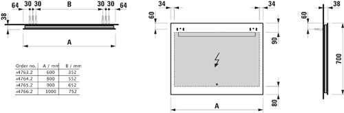 LAUFENe Leelospiegel met geïntegreerde horizontale LED-verlichting, aluminium frame, 900 mm, uitvoering met 1 aanraaksensorschakelaar