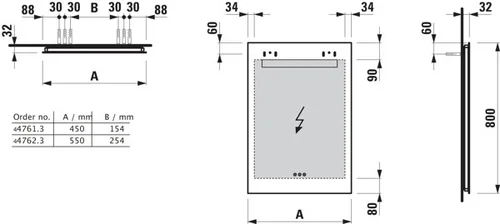 Leelospiegel met geïntegreerde horizontale LED-verlichting, aluminium frame, 550 mm, uitvoering met 3 aanraaksensorschakelaars