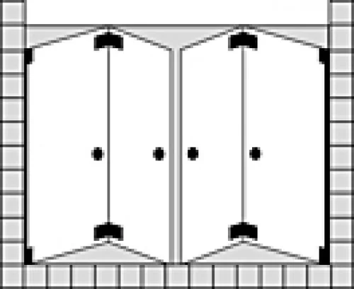 - Een deel van de deur zit niet in het midden, de wanddeur (8 mm glasdikte) is altijd 56 mm groter.