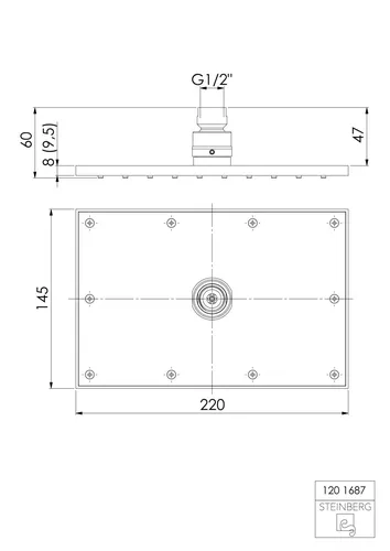 Steinberg Serie 120 hoofddouche, regendouche, hoekig, 145x220x9.5 mm
