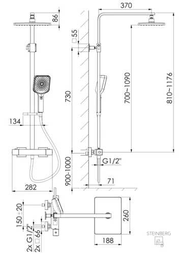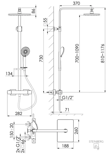 Steinberg Serie 342 doucheset, complete set incl. thermostaat, regendouche en handdouche