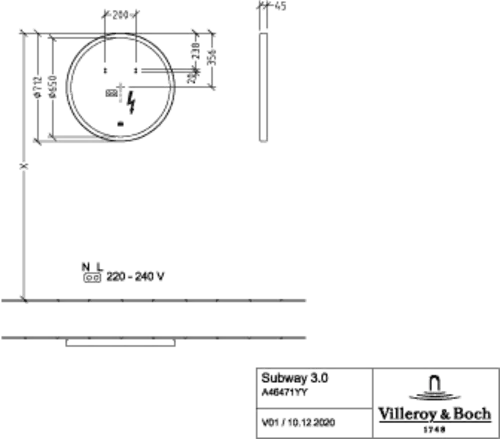 Subway 3.0 spiegel met LED verlichting, rond, 910x910x45mm