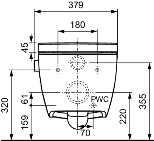 - pre-fix technologie: in de fabriek voorgevormde WC-bril voor een wiebelvrije zitting en deksel (compatibel met alle douche-wc's van TECE)