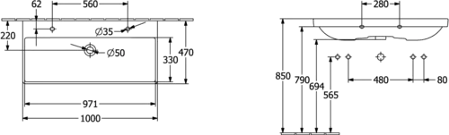 Villeroy & Boch Avento wastafelmeubel, 2 kraangaten, met overloop, 1000x470mm