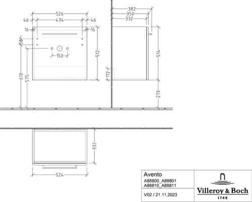 Villeroy & Boch Avento wastafelonderkast, 1 deur, stop rechts, 530x514x384mm, greep Chrome glans